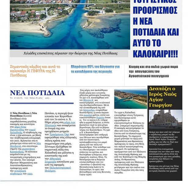 Με χαρά σας παρουσιάζω μια πρωτοποριακή και πρωτότυπη έκδοση για την Νέα Ποτίδαια του Δήμου Νέας Προποντίδας.