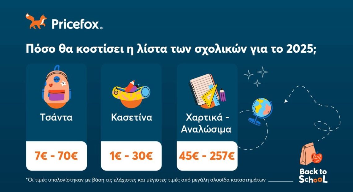 Το Pricefox, η κορυφαία πλατφόρμα σύγκρισης και αλλαγής παρόχων ενέργειας, έψαξε και βρήκε πόσο περίπου θα κοστίσουν* τα σχολικά είδη για τη φετινή σχολική χρονιά και μας δίνει συμβουλές για να εξοικονομήσουμε χρήματα.
