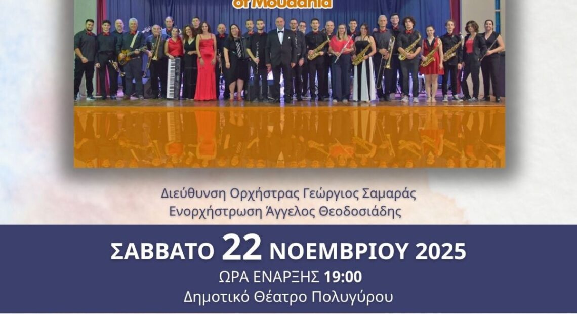 Το Σάββατο 22 Νοεμβρίου 2025, στις 19:00, το Δημοτικό Θέατρο Πολυγύρου θα φιλοξενήσει μια μοναδική Συναυλία Αγάπης με το δημοφιλές μουσικό σχήμα “the Big Band of Moudania”.