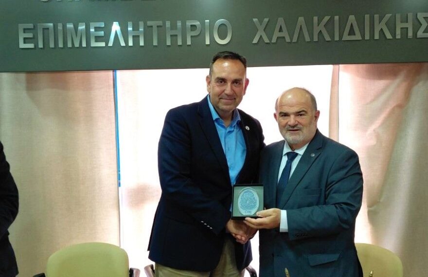 Επίσκεψη στο Επιμελητήριο Χαλκιδικής, πραγματοποίησε την Τετάρτη 12 Νοεμβρίου 2025 5μελής αντιπροσωπεία της Γενικής Συνομοσπονδίας Επαγγελματιών Βιοτεχνών Εμπόρων Ελλάδας (ΓΣΕΒΕΕ), που αποτελούνταν από τον Πρόεδρο κ. Γιώργο Καββαθά, τον Α’ Αντιπρόεδρο κ. Δημήτρη Βαργιάμη, τον Γεν. Γραμματέα κ. Σωτήρη Κοτσαμπά, τον Εκτελεστικό Αντιπρόεδρο κ. Βασίλη Καμπάνη, –